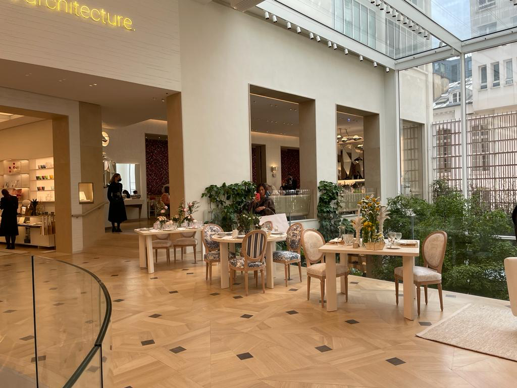 Elegant cafe inside Dior Flagship, Paris